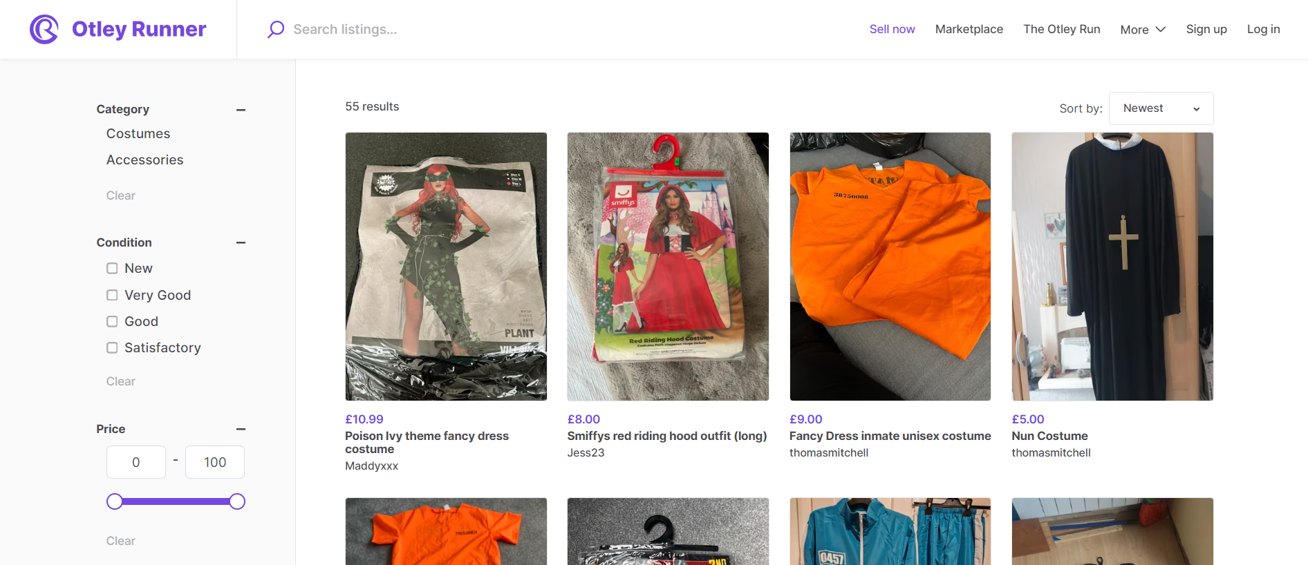 The Otley Runner was an online marketplace I created for students to buy and sell fancy dress costumes.